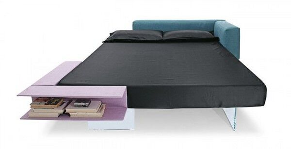 O dojem plovoucího vzhledu postele se starají čtyři desky z průhledného krystalu, jež přinášejí dokonalý optický klam. Stylovost a střídmost materiálů zaručuje výrazný minimalismus, který je v moderních interiérech tolik žádoucí.